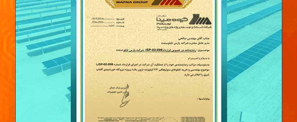 اعلام رضایتمندی گروه مپنا از عملکرد شرکت پارس تابلو صنعت